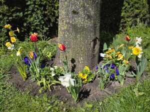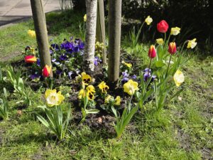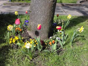 Our volunteers transformed the tree bases on the village green and the loo bed with a gorgeous mix of colour, texture, and pollinator‑friendly planting: